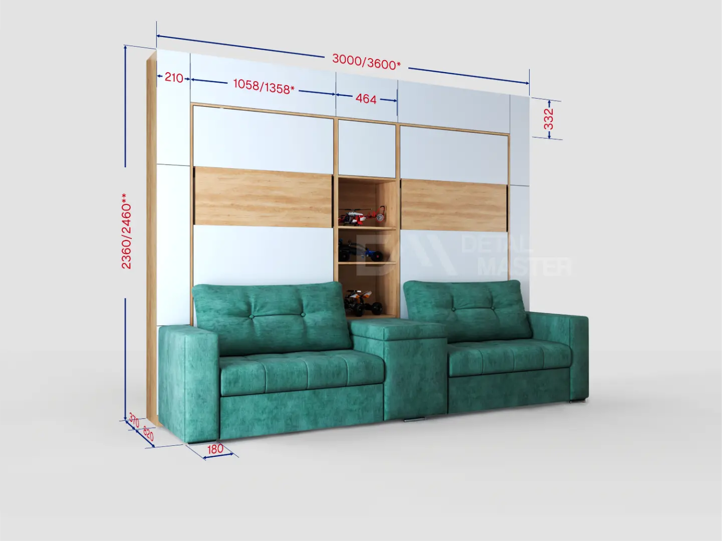 Дополнительные опции, такие как: освещение, зарядное устройство, розетки, мягкое изголовье, матрас, мягкий борт - не входят в стоимость шкаф-кровати "Twin 2.0". Вы всегда можете самостоятельно их добавить в опциях или написать менеджеру при оформлении заказа.